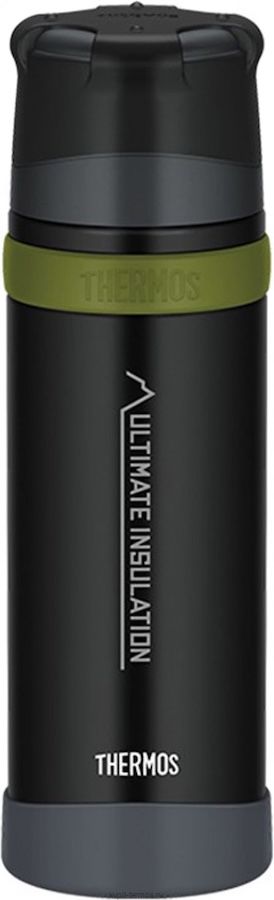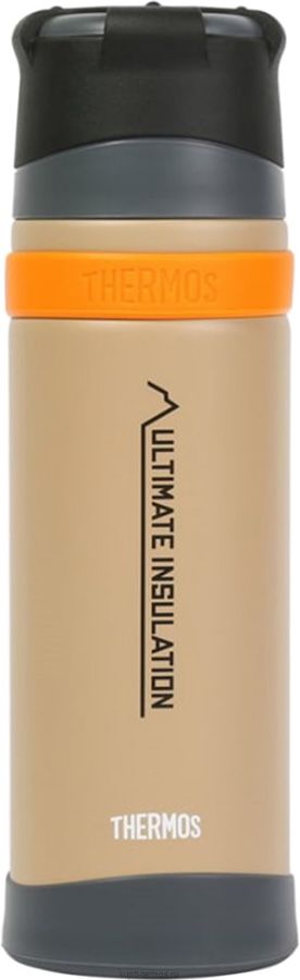 Термос для напитков, 0,75 литра, нержавеющая сталь, узкое горло, глухая пробка, силиконовое кольцо, стальной, чёрный и бежевый цвет