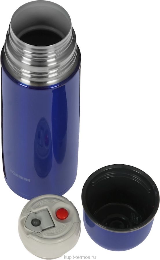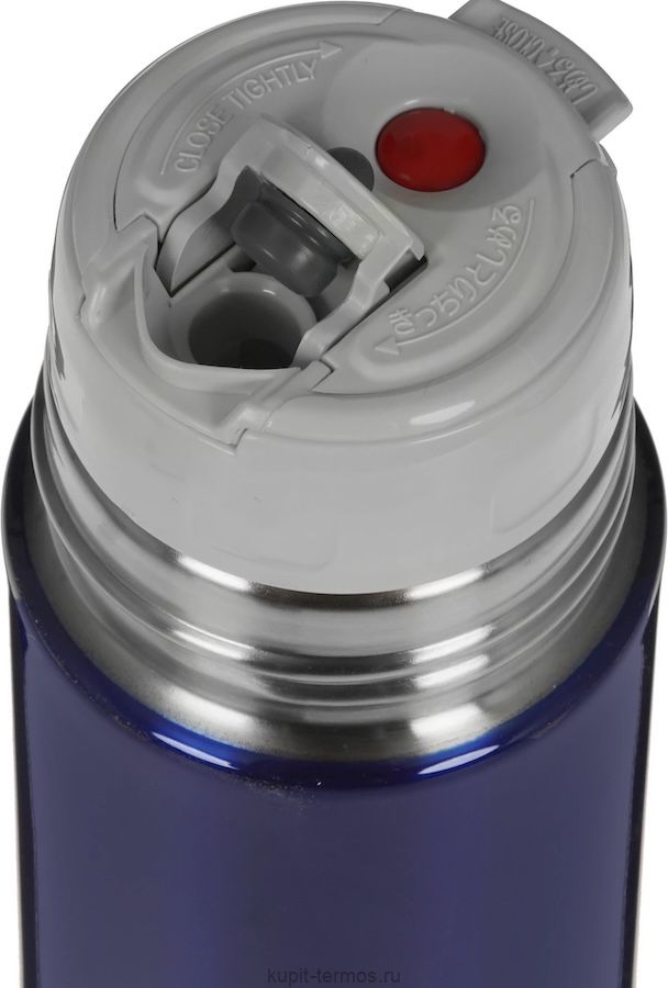 Термос для напитков, 500 мл, нержавеющая сталь, тефлоновое покрытие, узкое горло, пробка с кнопкой, синий цвет